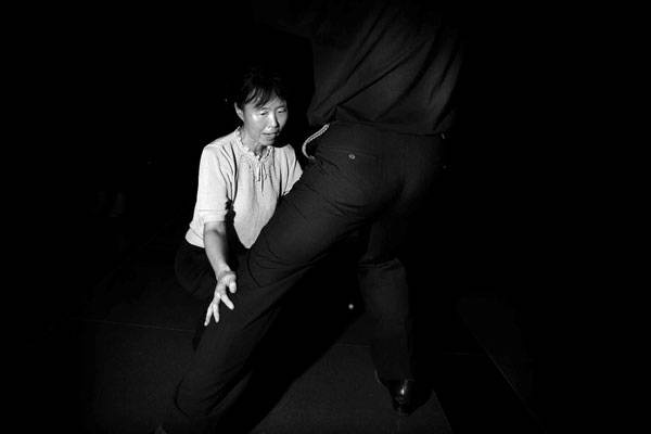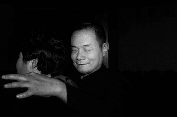 2006年3月21日,北京残疾人活动中心,一位盲人闭着眼寻找自己的舞伴。每周来跳舞的时间,是他们最享受的时间。
