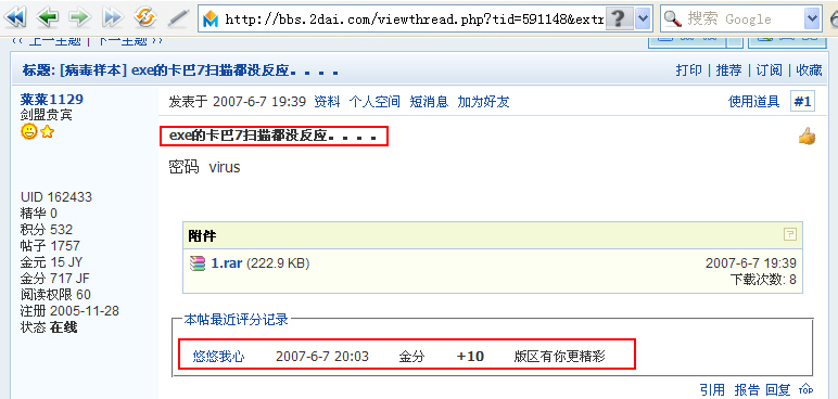 第一次来安全软件论坛 看见的第一篇文章就是这个 因为不知道安全软件论坛是什么样的 只能说感慨良多啊..