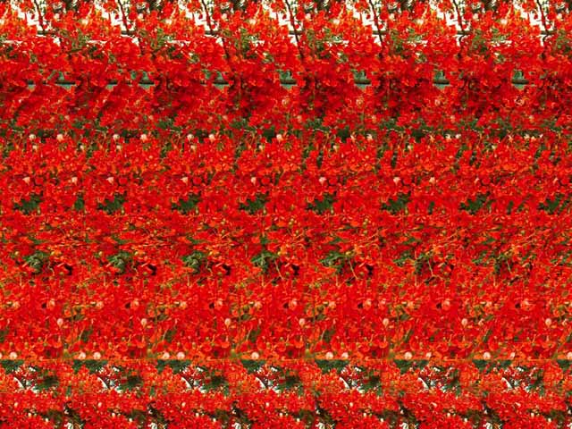 从电脑上看费劲的话,可以这样,如果画面上标有两点(如没有,可以通过仔细观看,在横向上,相隔约3-5厘米,就有相同的图案,如两个相同颜色和大小的点等),那么可以用两个颜色深点的线垂直粘在显示器屏幕的上面(可以进入屏幕少许),使两条线垂直并分别与两点相连。然后,在显示器后面上方放个小东西做参照物,沿显示器上边沿来看参照物,前后移动眼睛的焦点,使左眼、左线、参照物成一直线,右眼、右线、参照物成一直线,可以挡上一只眼调整,然后两眼看参照物,此时两条线就变成了三条,让视线沿中间的线爬进立体画面就看到了立体效果。