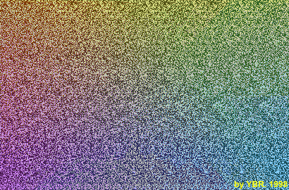 请把下图上方的两点作为目标,先使眼睛休息片刻,然后象眺望远方那样,用稍模糊的视线瞄准两点,就会看从两点各自分离出另外两个点,然后调整视线,试图将里面两个点合成一点,当四点变为三点时,你便会看到立体图象。