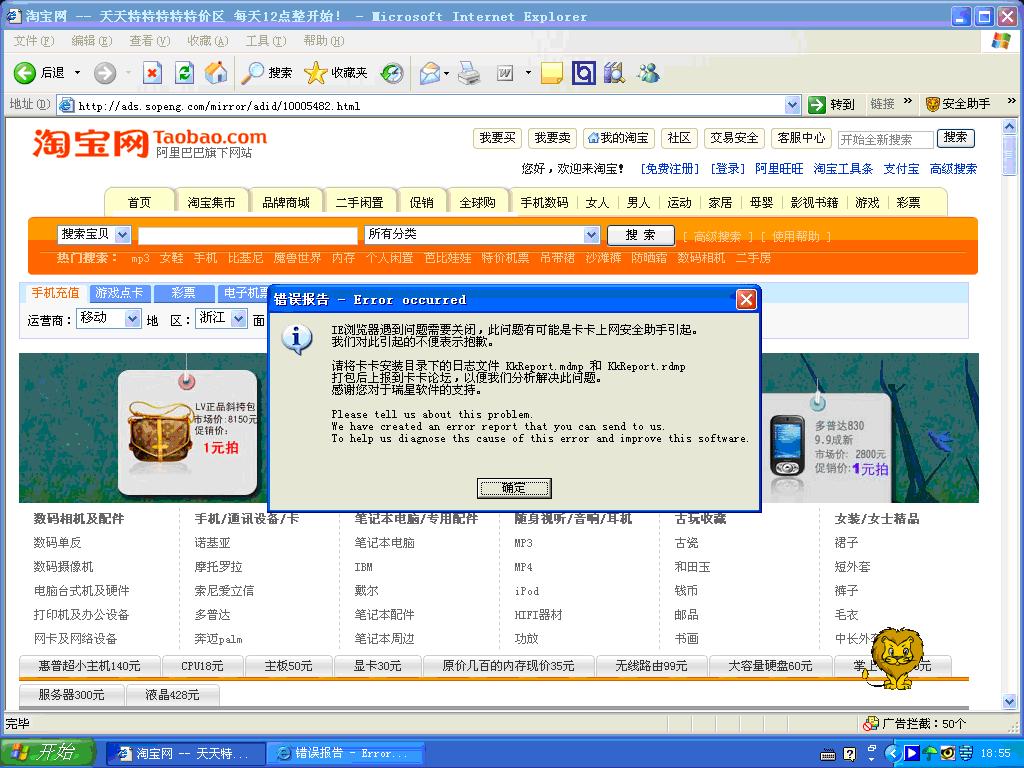 IE浏览器出现问题,可能是卡卡上网助手引起的,请求解决。具体情况如图: