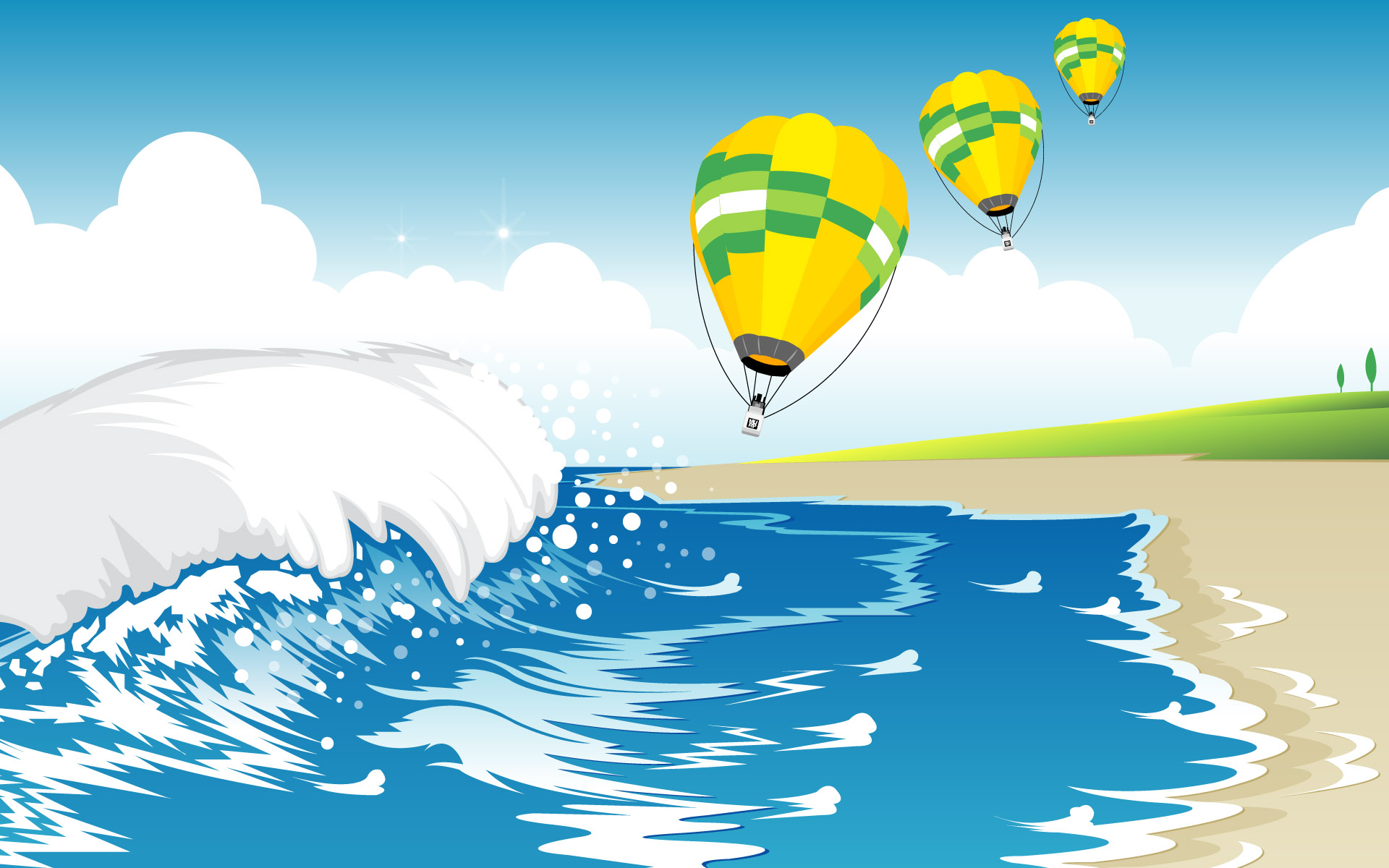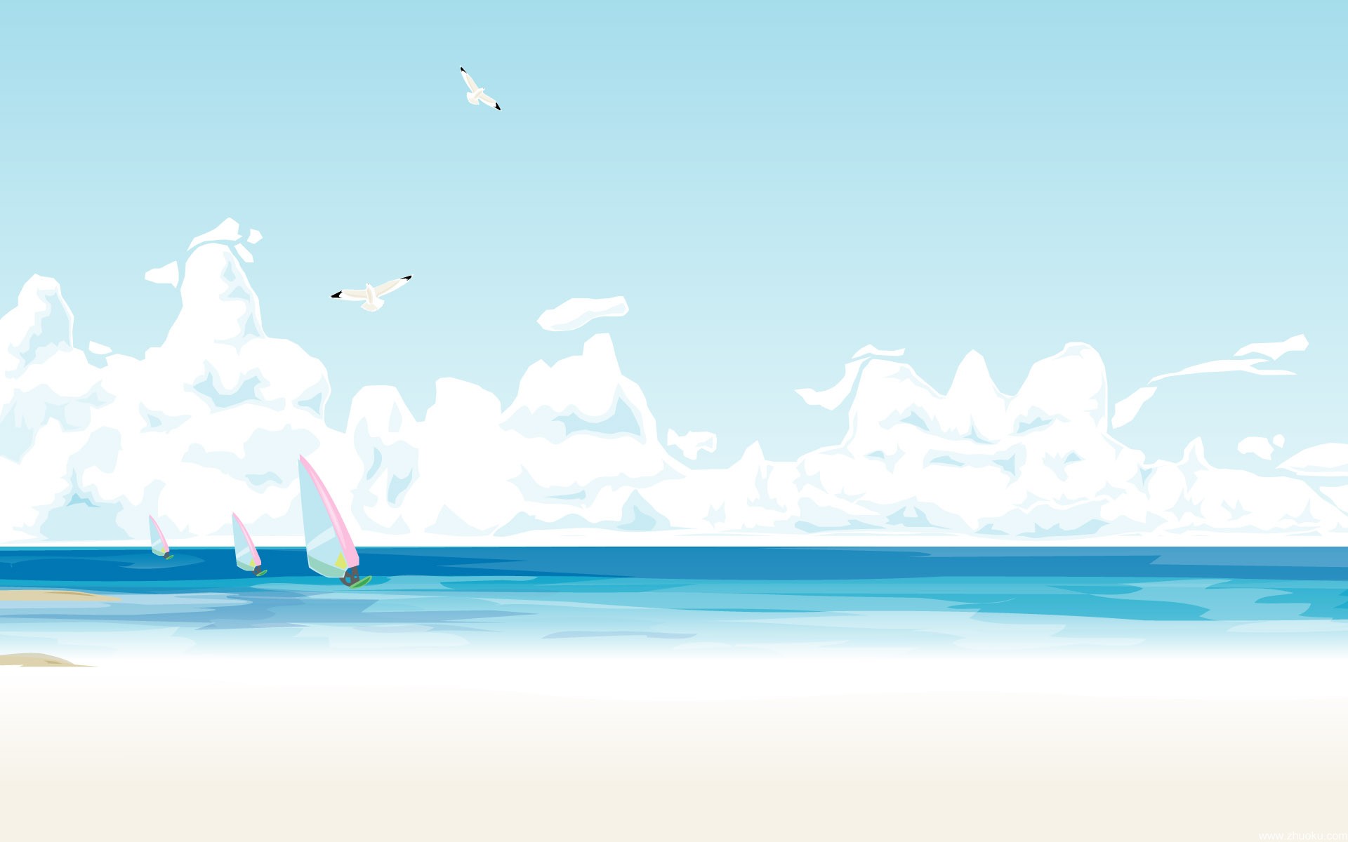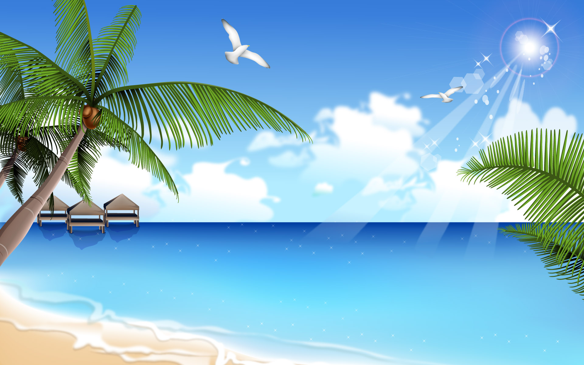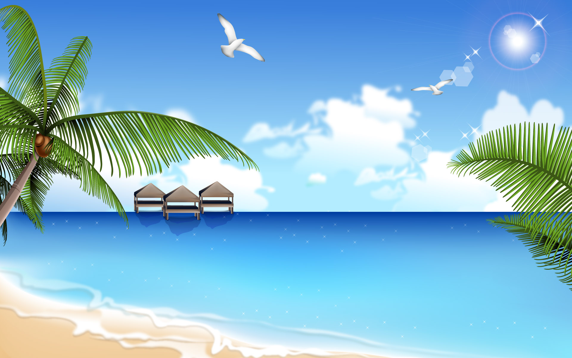 【组图】炎炎夏日,来一组清凉夏日海滩矢量宽屏壁纸 !^_^
