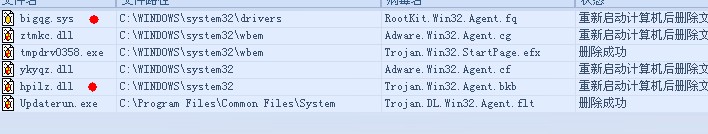 图中作了红色标记的两个病毒杀不了,提示重启后删除.重启了也杀不了,求解决!!!
