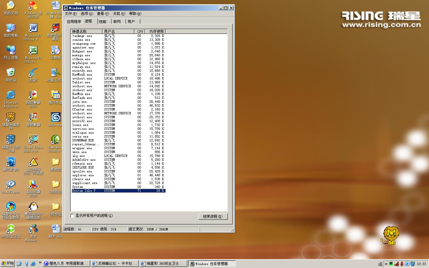 以为是病毒 在安全模式 下 也提示 初始化失败 不能打开 下载橙色八月后 瑞星可以打开 用2007.6.16 号 的 正版 查杀报 无病毒 我们工作室二十多台机器都用瑞星 现在已经有4台出现这个状况。