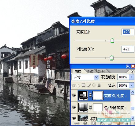 1、对背景进行色相和饱和度的调节,把红框内的色彩饱和度都调为-100