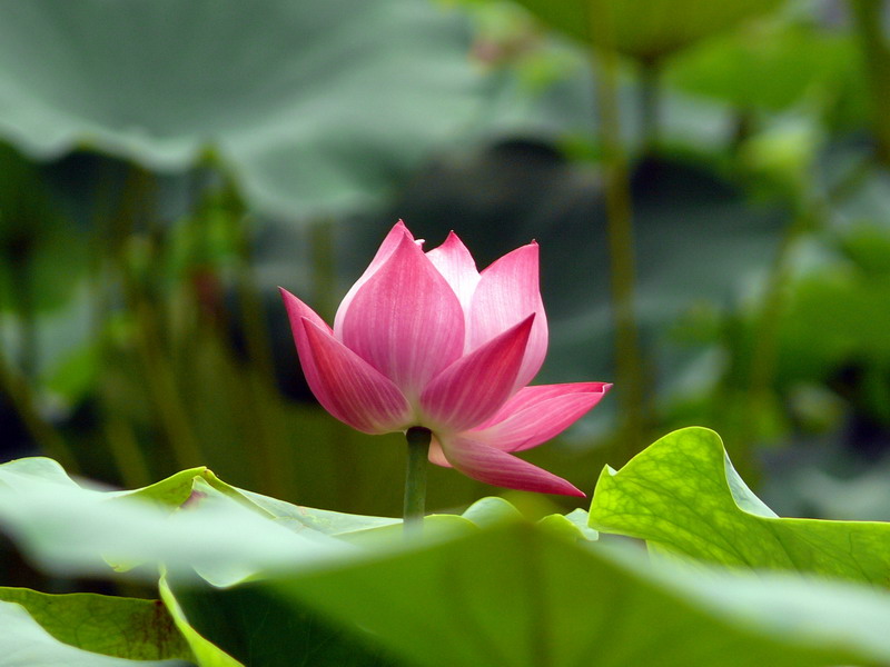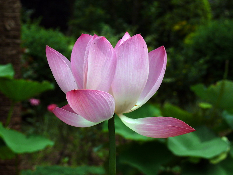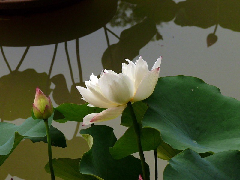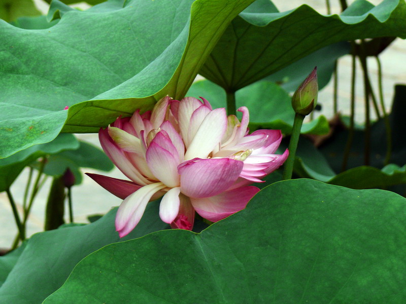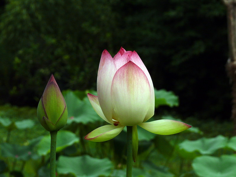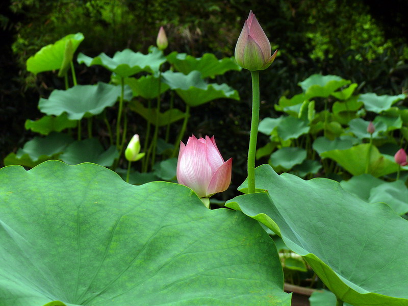布展的荷花,较易拍摄的方便之外,避开树木等背景是需要注意的问题