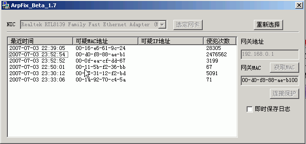 是中ARP病毒,最好打上系统补丁,然后在安全模式下用最新的杀毒软件杀毒,然后可下载个ARP保护程序