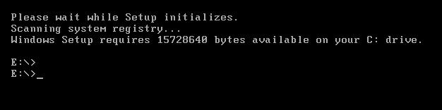 2. 改到 CD-ROM 驱动器,请在 A 提示符后键入 E:
