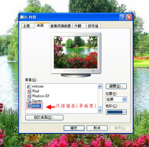 5)C:\Documents and Settings\用户名\Local Settings\Application Data\Microsoft文件夹(隐藏属性文件夹)中的图像文件,是用电脑里面保存的图片(照片)右键设置为桌面背景文件。
