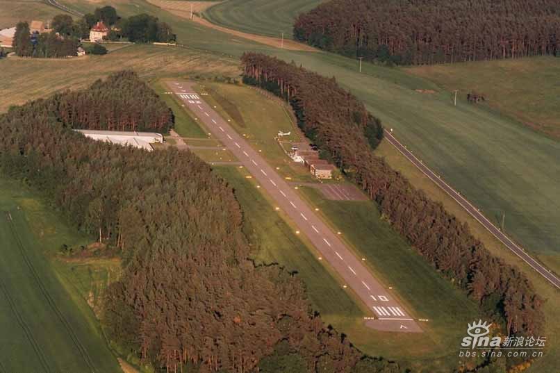 德国Ratisbon Oberhub机场。下了飞机回家,除了坐车,还可以骑马,马可以栓在树林里