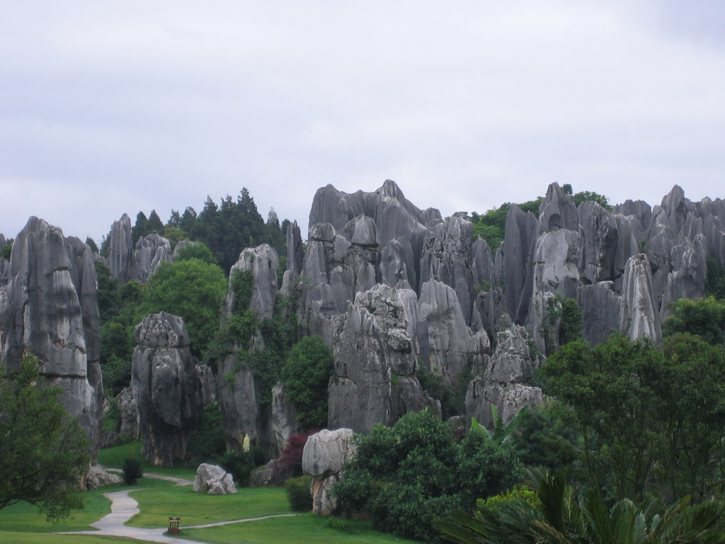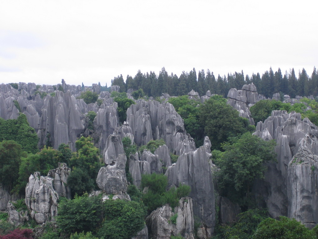 正值昆明雨季,我们到的第一天就开始下雨。第二天去石林,天阴沉沉的。