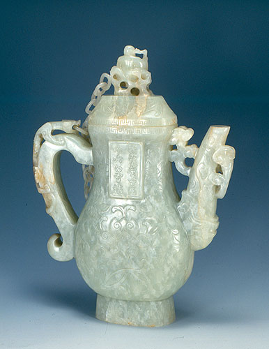 白玉花卉执壶