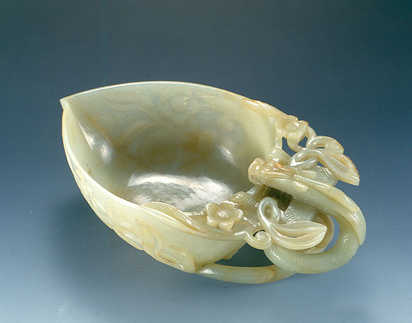 青玉双螭盏托、杯