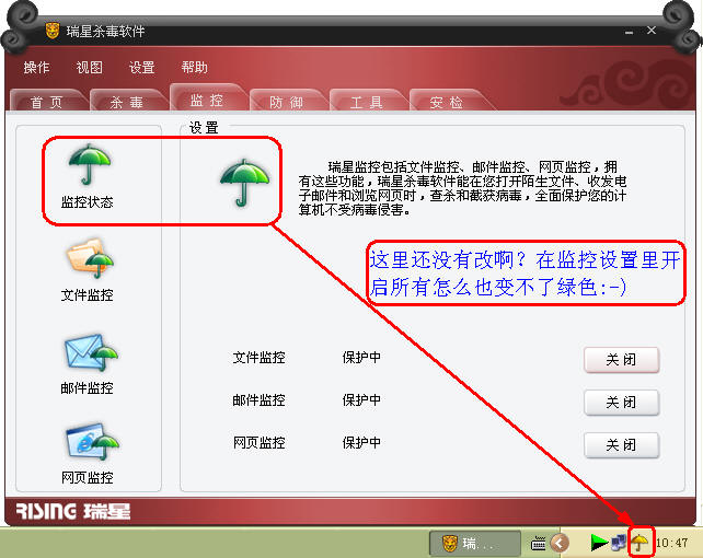 是在设置窗口界面上停止监控,然后再全开,任务栏变不过来:-)