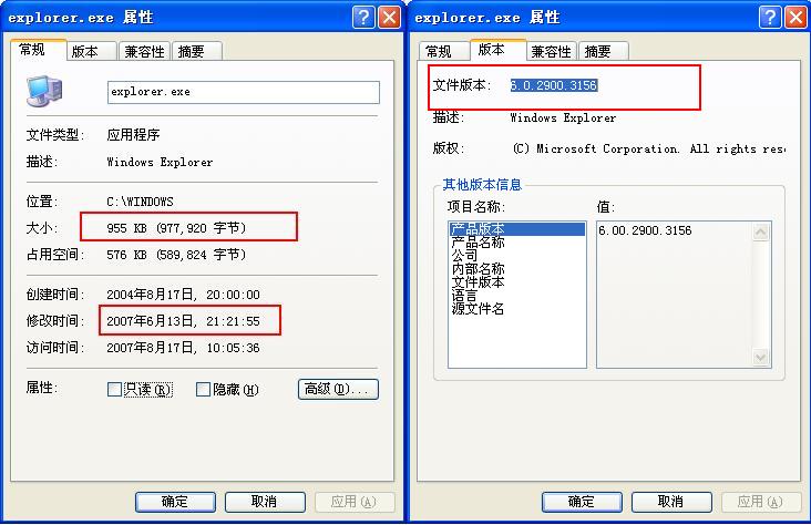 【baohe的贴子】今天打完补丁,explorer.exe的大小以及MD5都变了。 各位的结果是这样吗? ……………… |