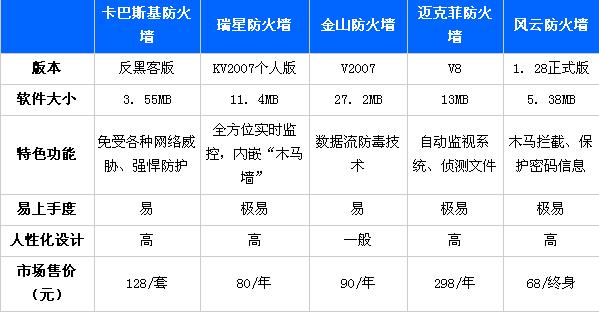 迈克菲防火墙风云防火墙冰盾防火墙KFW傲盾防火墙没有使用过