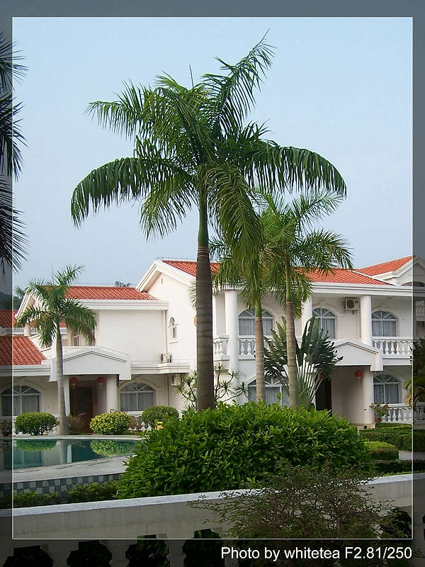 所住的兴隆明月度假大酒店,小别墅结构,还有游泳池.唯一的遗憾是,当地自来水是从地下引上来的,含硫磺,有股臭味.
