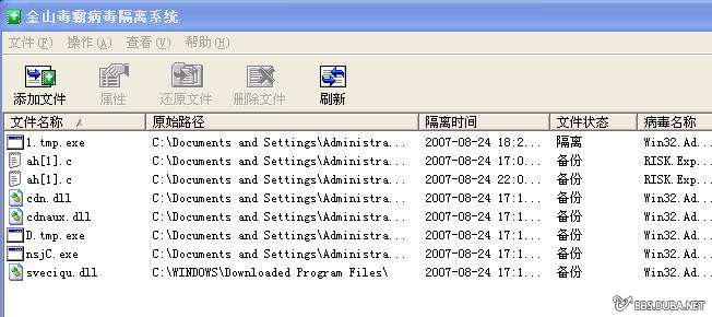 然后在金山隔离系统里发现这些文件,可以删除,我也删除了