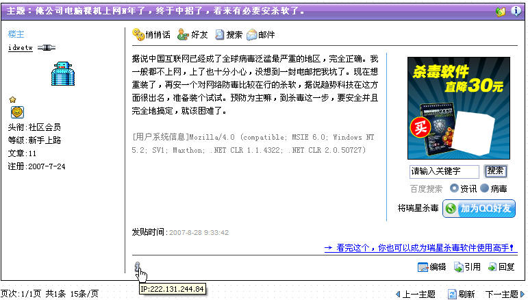 瑞星杀毒软件V17的个人介绍 by dg1vg4
