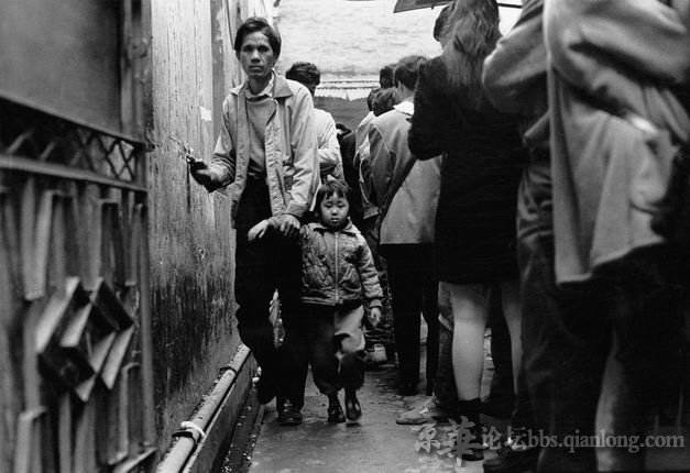 叶健强/1991·广东广州/火车站挤满南下打工的人,上厕所要排上大半个小时的
