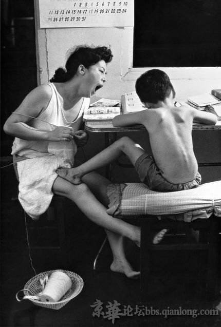 田鸣/1991.夏·江苏南京/夏夜里陪孩子读书的母亲