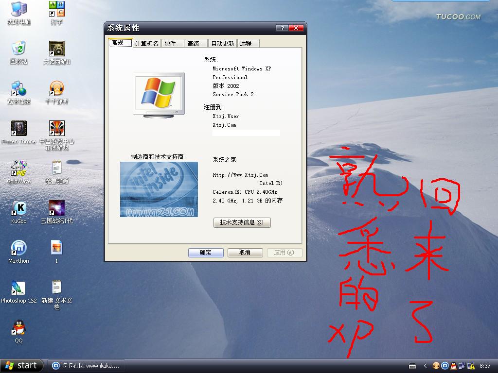在装完2003系统后,我又装了一遍稳得起的GHOST,在启动系统那看到了选择,于是我选择E盘的镜像还原,4分钟后,终于见到我熟悉的XP