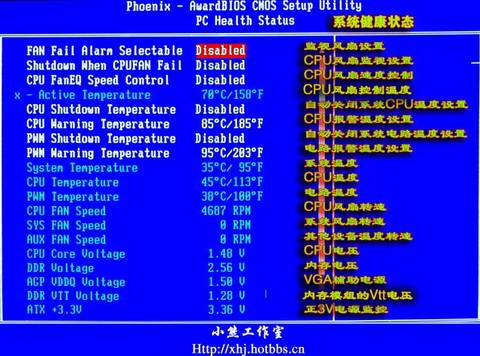 解释:有的主板具备硬件的监视功能,可以设定主板与CPU的温度监视、电压调整器的电压输出准位监视和对各个风扇转速的监视,当上述监视功能在开机时发觉有异常情况,那么便会出现上述这段话,这时可以进入COMS设置选择POWER MANAGEMENT SETUP,在右面的**Fan Monitor**、**Thermal Monitor**和**Voltage Monitor**察看是哪部分发出了异常,然后再加以解决