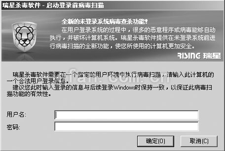 瑞星2008无法使用登陆系统前扫描功能