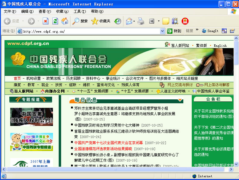 中招后,下载器从网上下载一堆病毒文件到系统中(图1)。此后,病毒打开IE浏览器,访问中国残疾人联合会网站(图2)。