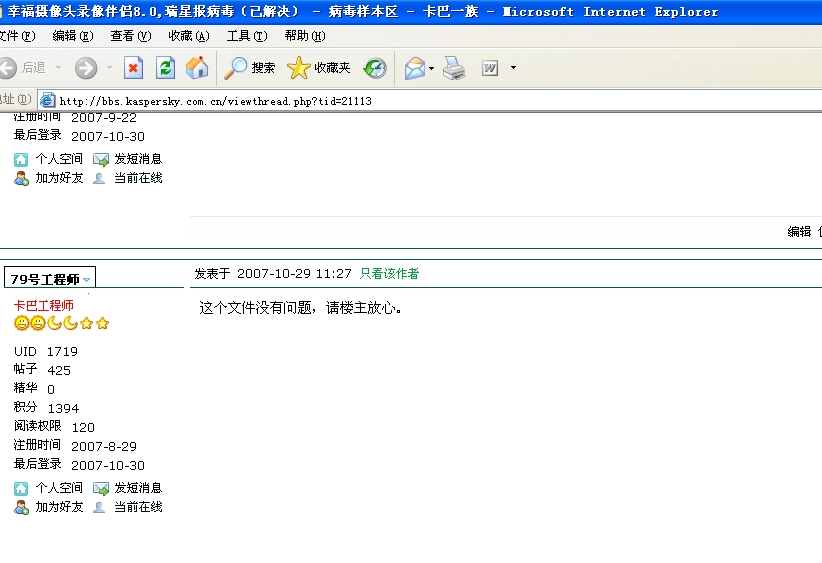 卡巴证实文件没有问题,请版主测试瑞星是否误杀