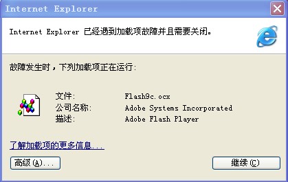 Internet Exolorer 已经遇到加载项故障并且需要关闭