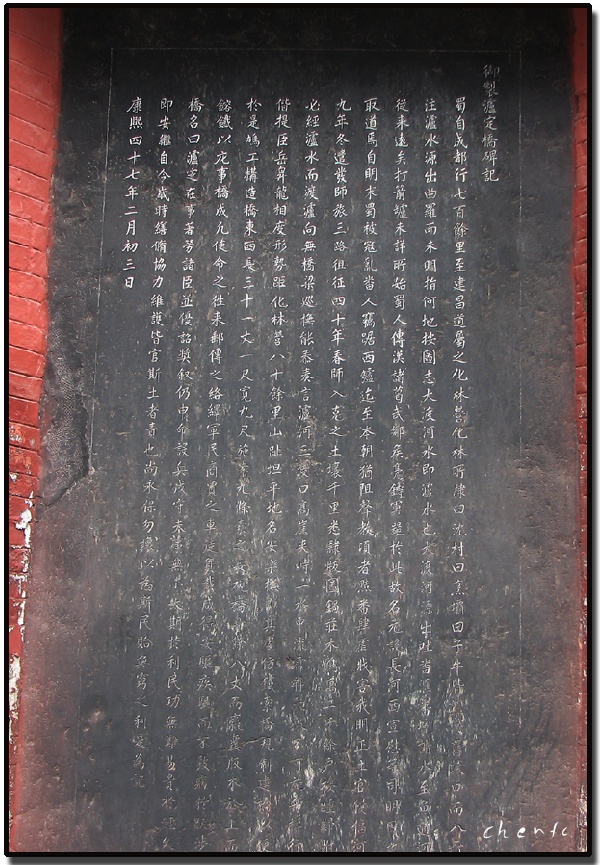 康熙御制建桥碑记。从碑文看,卢定桥建于康熙39年。