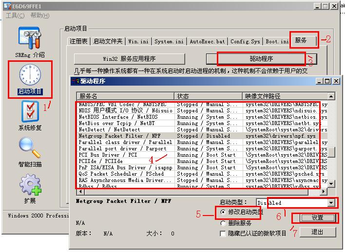 重启电脑,用扫日志的SRENG工具,将下面的启动类型改为“Disabled”