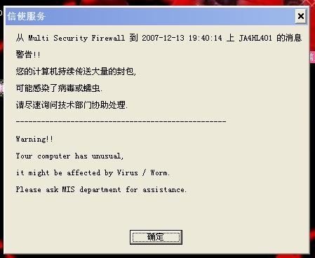 最近上网网速变的超慢,用瑞星没杀出什么.老是弹出这个个框框里面说:由于您不断传送大量封包,感染了蠕虫或病毒.