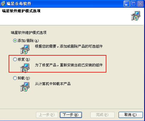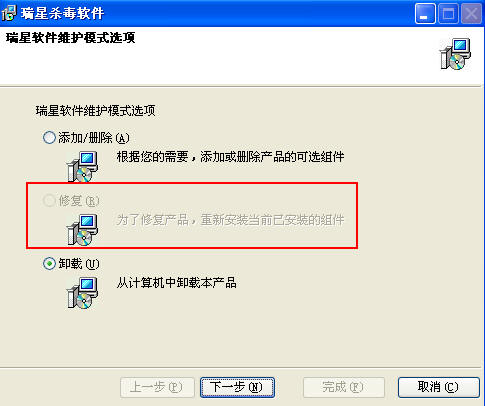 现在很多朋友说想修复瑞星都无法修复,该修复选项变灰了,无法选择。