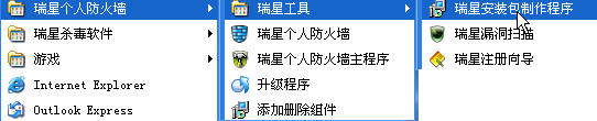 1.点开始/程序/瑞星个人防火墙/瑞星工具/瑞星安装包制作程序。如图:
