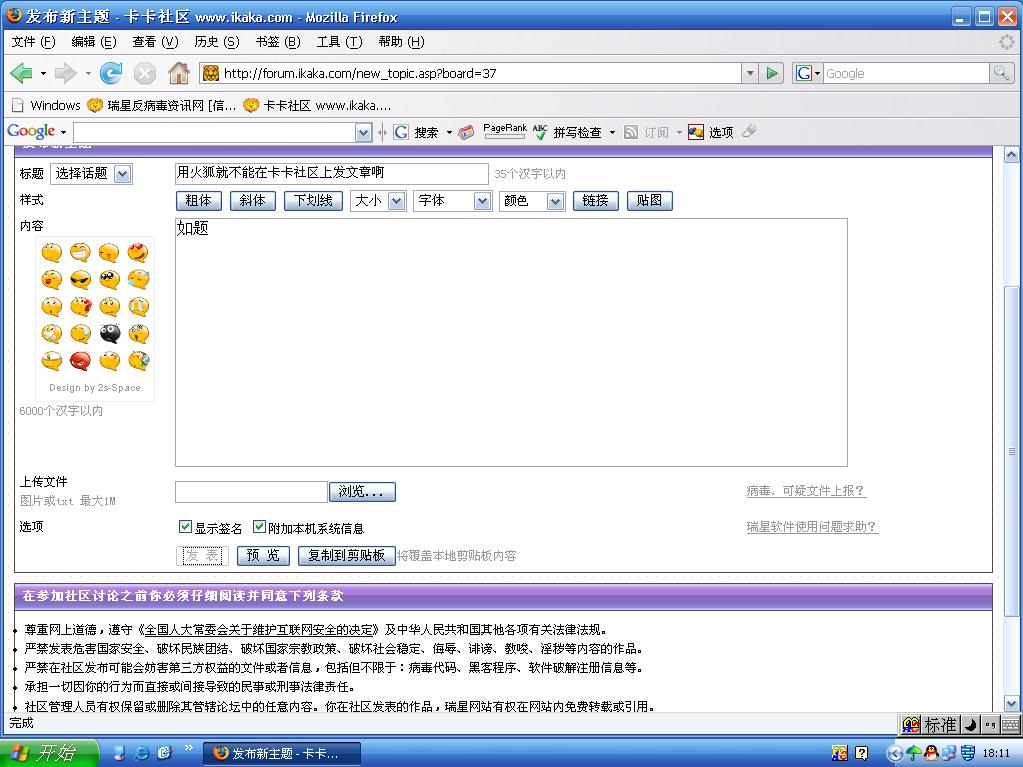 用火狐就不能在卡卡社区上发文章啊