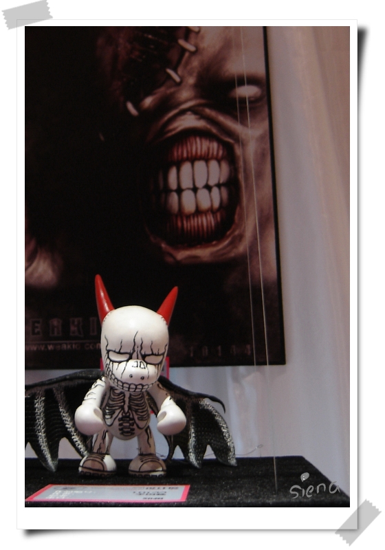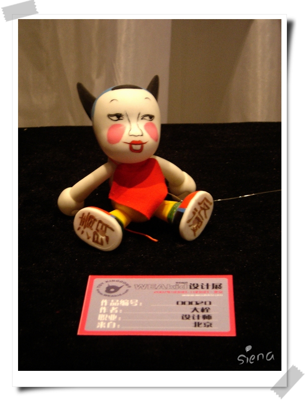 现在很时兴画素胎玩具,这个带角的小人,叫WEAkid,是07年十一在中关村展览的时候拍的:)