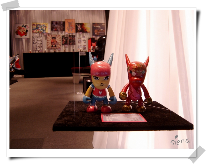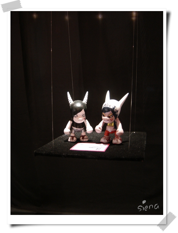 现在很时兴画素胎玩具,这个带角的小人,叫WEAkid,是07年十一在中关村展览的时候拍的:)
