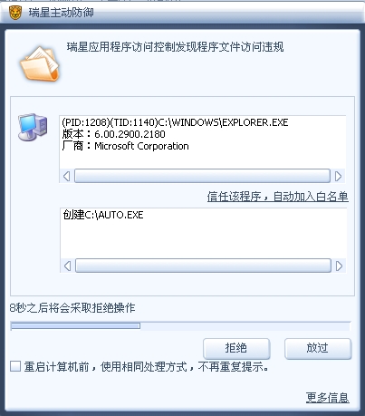 未知病毒不用怕,用瑞星主动防御autorun病毒
