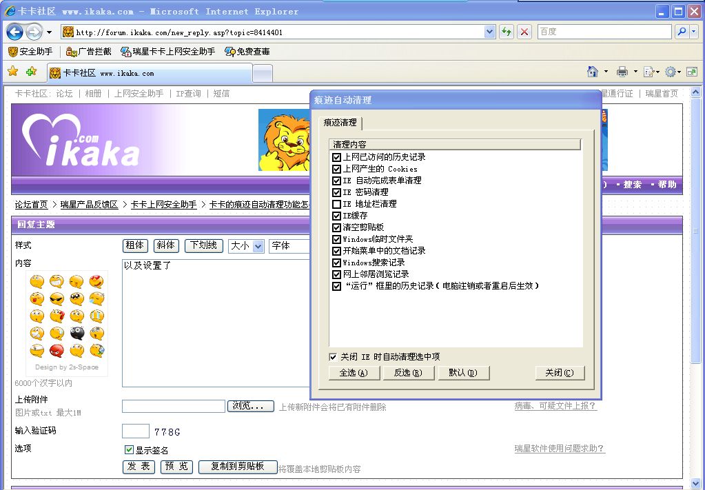 卡卡的痕迹自动清理功能怎么在ie7里面不起作用 为什么??【待楼主回复】