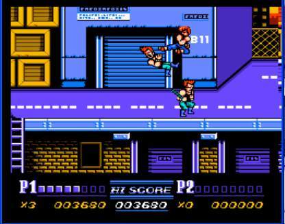 双截龙2,我打赌1块牛皮糖这是第一关,坐电梯上去的卷闸门口。