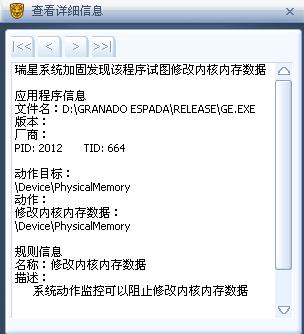 可以将GE.EXE这个文件上报瑞星分析看有没有问题。如果没有问题,下次瑞星提示时选择放过,或者添加到主动防御的白名单里。