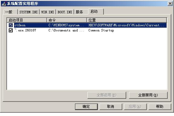开始-msconfig-启动,出现~.exe260187并且无法禁止启动