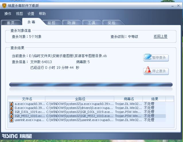 再重启电脑,升级杀毒软件至最新版本,全盘杀毒。
