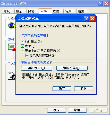 打开网页/工具/internet选项/内容/自动完成,如图设置