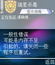 本人手机是N70,也就是S60第二板!根据瑞星手机杀毒软件的要求,而对应下载了Symbian OS Series 60平台(第二版)使用的RMS_CHS_S60v2x_V2.0杀毒软件!安装以后,点击 激活 从网上获取用户ID!可是试了无数次,都是提示: 一般性错误 可能是内寸不足引起的,请关闭一些程序后重试.然后我把所有的程序都关闭在试也是这么提示,最后我格机了试...结果....仍然还是同样的提示!!麻烦知道的指点指点哈!! [img][/img]