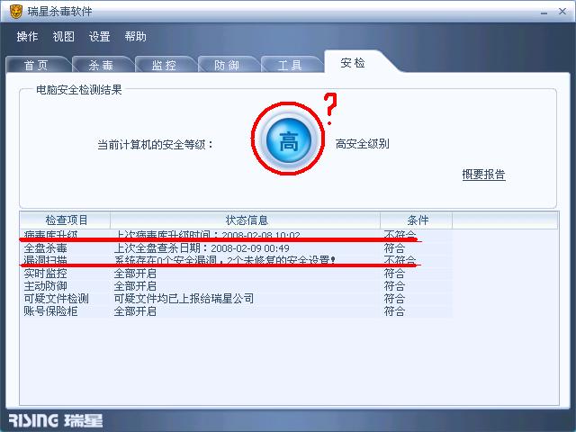 我的杀毒软件 安检老是中级 详细报告里说是...