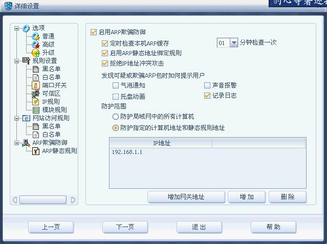 瑞星防火墙_设置_详细设置_ARP欺骗防御