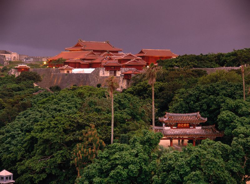 琉球王国从15世纪建国起,在沟通JP、中国、朝鲜以及南亚各国的贸易交流中起了重要的桥梁作用。图片上的首里城遗址,是由第一代王尚巴志着手修建、由第二代王尚真、尚清扩建而成。它是琉球王国的ZZ、外交、贸易中心。在第二次世界大战的冲绳战役中,美军摧毁了这座古城。1992年开始的修复工程至今仍在进行中。